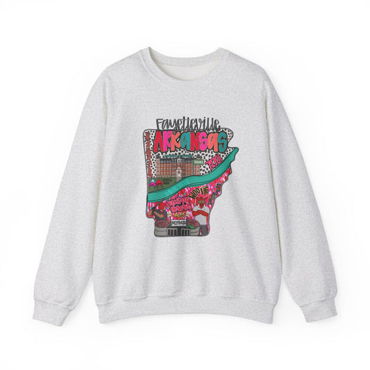 Arkansas Pink Crewneck Sweatshirt - Fayetville Little Rock Natural State Design