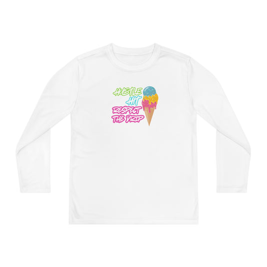 Baseball Youth Graphic Tee, Long Sleeve Tee for Kids, Hustle Hit Respect Drip Shirt, Sports Fan Gift, Children's Athleisure Top